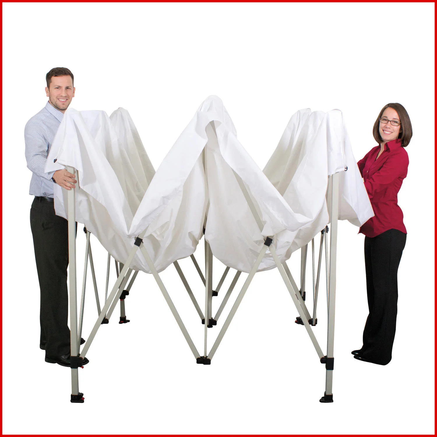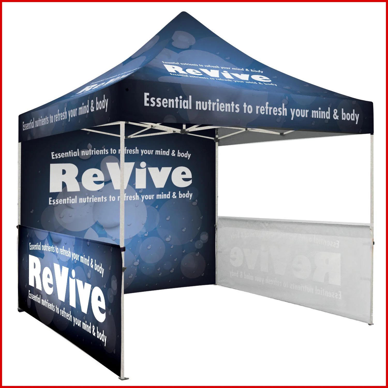 This 10 foot Event Tent is the next level in outdoor advertising. Achieve 360 degrees of branding with a custom full fabric dye sub canopy and hardware package.
